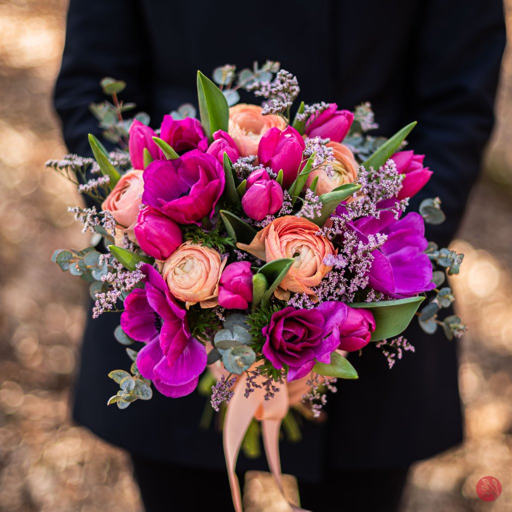 Tahle kytice je oslava osobitosti – plná kontrastů, energie a radosti z barev. Pryskyřníky a sasanky dávají kytici bohatost a „hloubku“, tulipány přidají jarní svěžest a lehkost. Celek působí jako sebevědomé gesto: děkuju, vážím si tě, obdivuju tě.