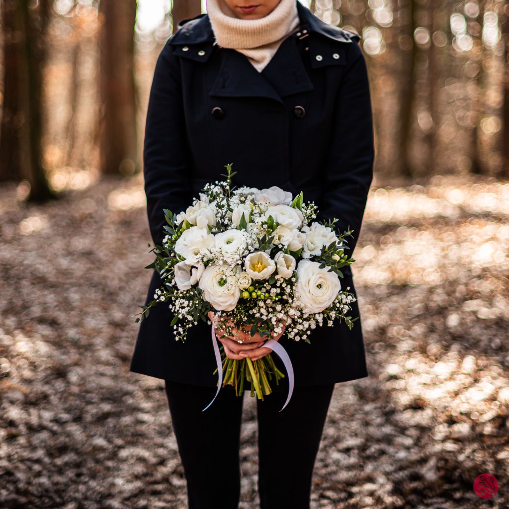 Styl vazby: Vzdušná, plná, ale čistá. Bílá dominuje, zeleň jen rámuje. Kytice působí luxusně i bez výrazných barev – právě díky kvalitě květů a jejich texturám.