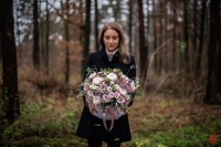 Tahle kytice je naopak pro ty, kteří mají rádi víc přírody a trochu „divočiny“. Vysoké stonky matthioly, exoticky působící nerine, tráva panicum a větvičky borovice vytvářejí strukturovanou vazbu, která připomíná zimní procházku lesem.
